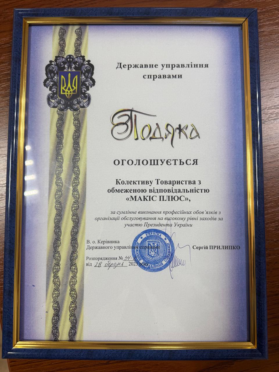 Очільник Луцького району подякував Катерині Юріївні за сумлінне виконання професійних обов’язків з організації обслуговування на високому рівні заходів за участю Президента України.
