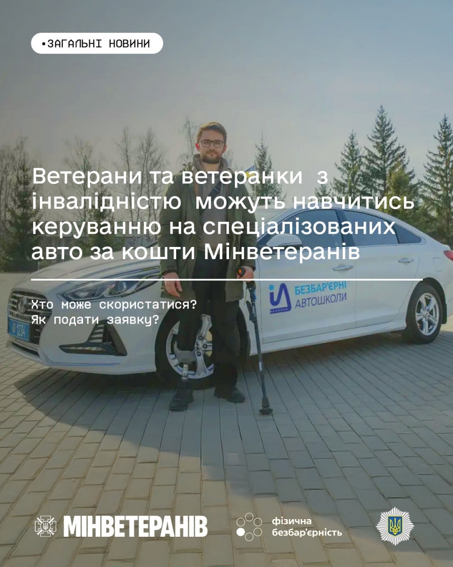 Тому Міністерство у справах ветеранів запустило ініціативу «Безбар’єрні автошколи», в межах якої компенсує вартість навчання водінню на спеціалізованих авто для ветеранів та ветеранок війни, членів їхніх сімей, родин загиблих (померлих) Захисників і Захисниць України.