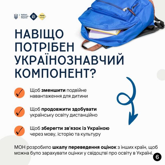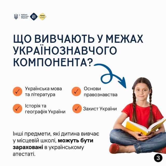 Українознавчий компонент – це скорочена програма для дітей, які тимчасово живуть за кордоном.