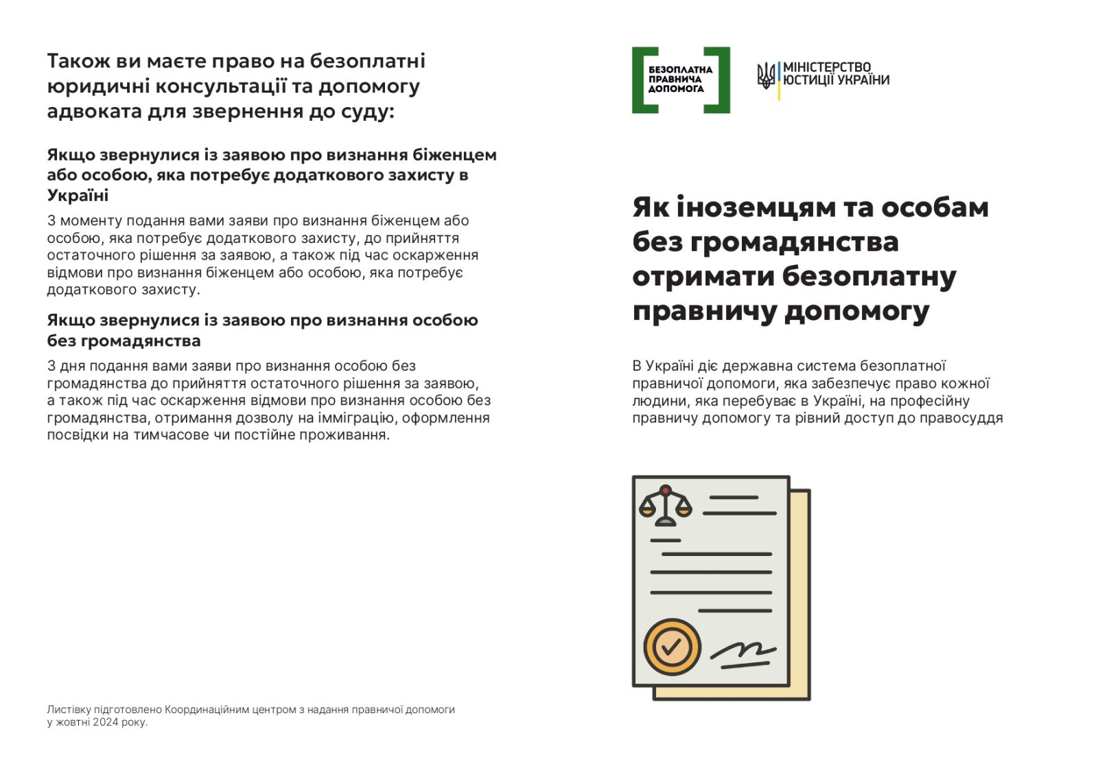 Іноземці також можуть звернутися до системи безоплатної правничої допомоги:
