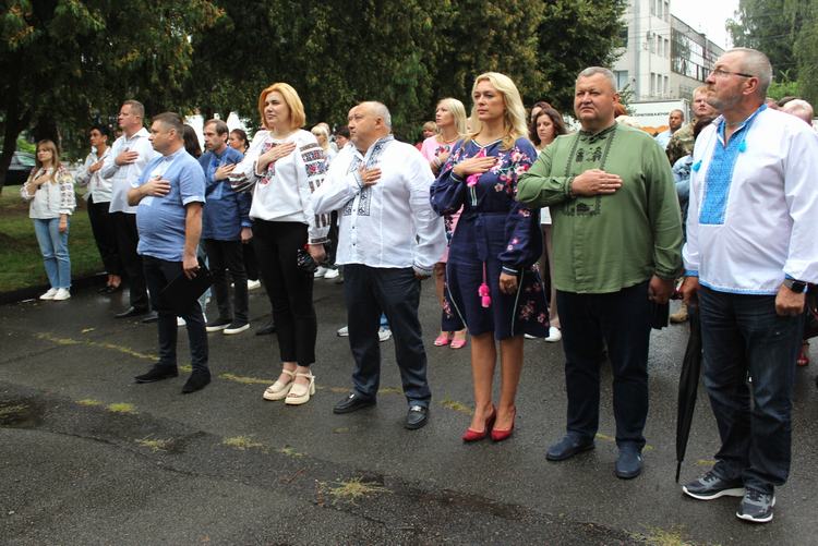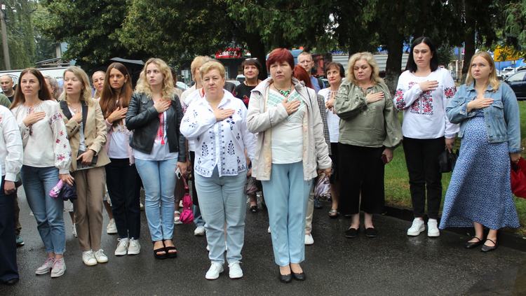 Потому працівники Луцької РВА з гордістю спостерігали за підняттям синьо-жовтого стяга під звуки Державного Гімну – це наші державні символи, за які щодня українські відважні військові жертвують своїм здоров’ям та життям.