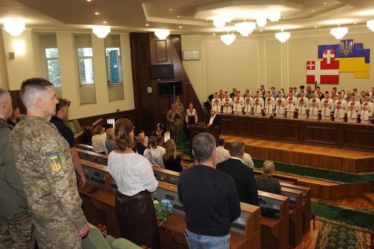 Учасники заходу, серед яких ветерани війни, військовослужбовці, священнослужителі, обласна, міська та районна влада, представники військових адміністрацій, органів місцевого самоврядування, правоохоронці, інтелігенція, громадськість, схилили голови в хвилині мовчання задля вшанування пам’яті загиблих Героїв України. Представники духовенства різних конфесій разом помолилися за Україну.