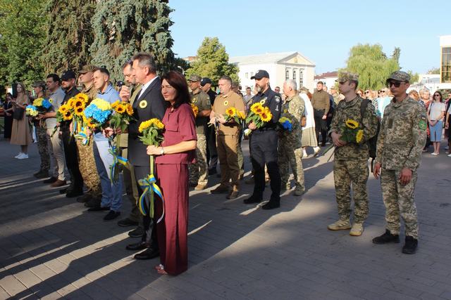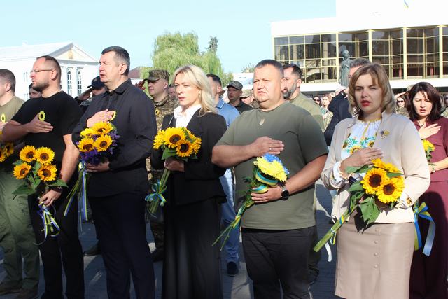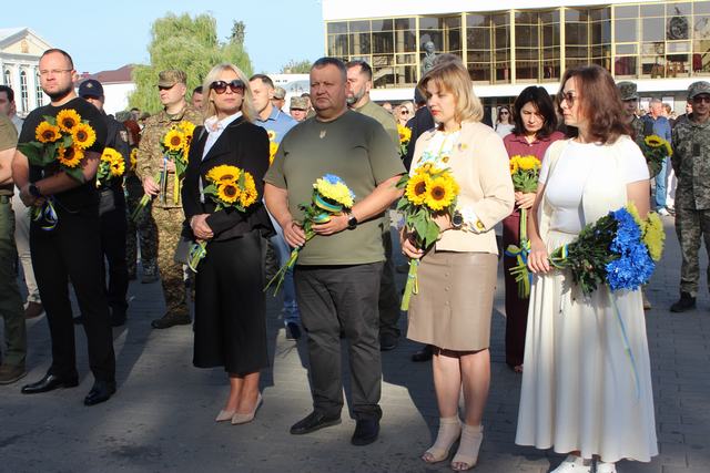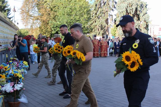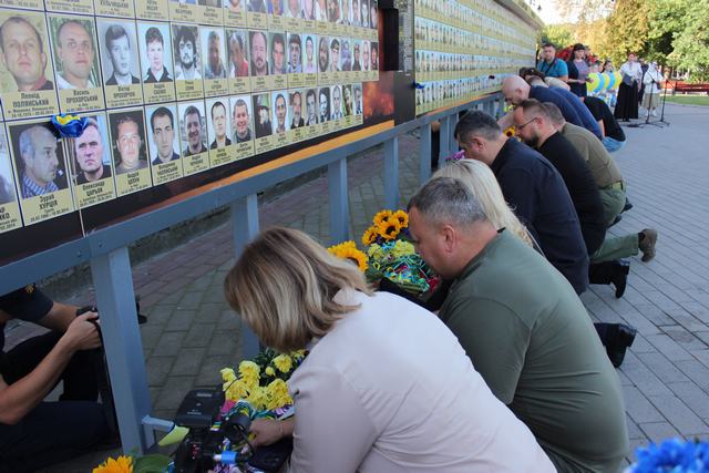 В День пам’яті захисників України, щоб віддати належне подвигу відважних та рішучих українських воїнів, які полягли в боротьбі за незалежність, суверенітет і територіальну цілісність України, сьогодні на Театральному майдані відбулося покладання квітів до пам'ятного фотостенду «Герої Небесної сотні – загинули за Єдність України».