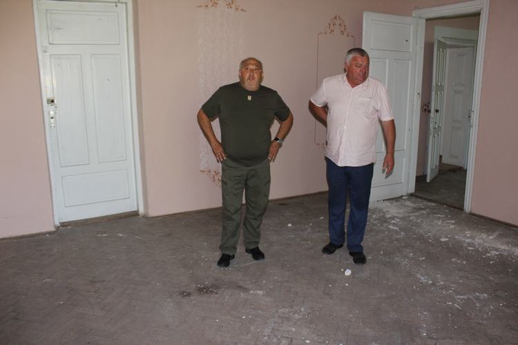 Анатолій Костик та Віктор Годик оглянули великі просторі кімнати з високими стелями та широкими вікнами. Після ремонту тут можна зробити гуртожиток із спільною кухнею на десять кімнат.