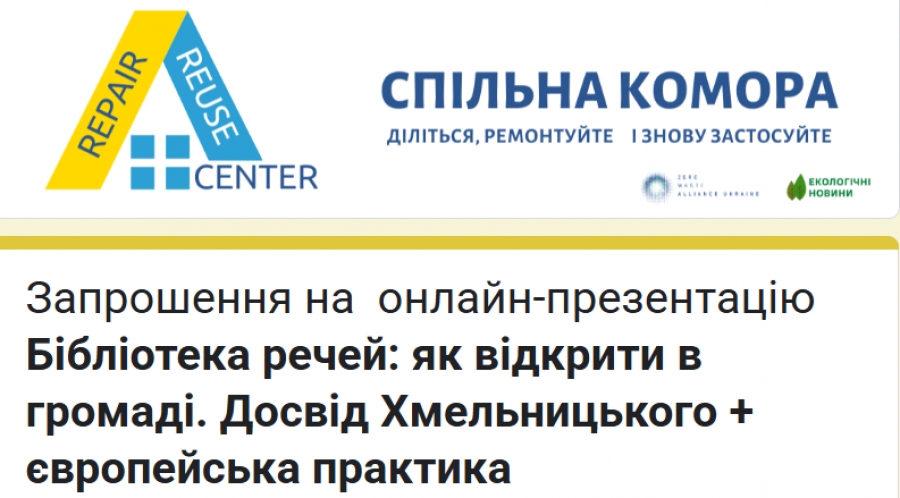Під час вебінару буде представлено практичний кейс запуску сервісу спільного користування речами у Хмельницькому, а також рекомендації європейських партнерів.