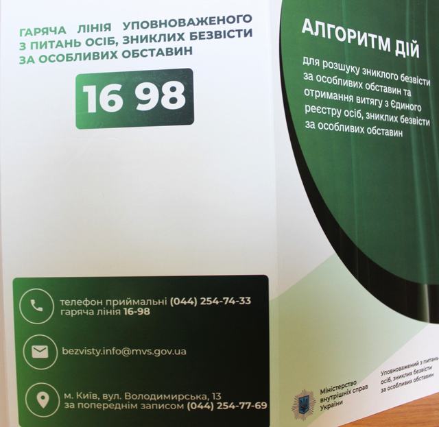 Для учасників зустрічі підготували роздаткові матеріали з корисною інформацією, контактами та покроковим алгоритмом дій у разі зникнення безвісти близької людини. Його також можна знайти на сайті МВС: http://surl.li/opsnk та в телеграм-каналі Управління: https://t.me/ZNYKLI_BEZVISTI_MVS