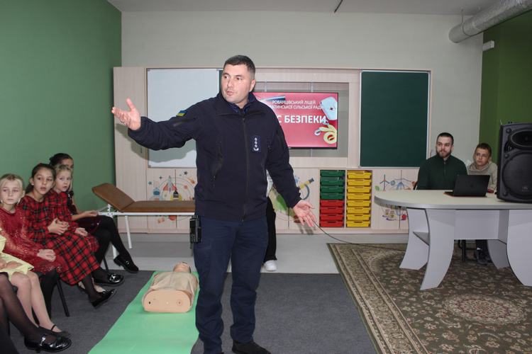 Керівник з ліквідації наслідків надзвичайної ситуації Алла Ганіч розповіла, що на території району розгорнуті та функціонують Пункти незламності. Відпрацьовуючи алгоритм дій у разі знеструмлення населених пунктів району через складні погодні умови, учасники командно-штабного навчання ознайомилися з роботою одного з таких, що в приміщенні Рованцівського ліцею Боратинської сільської ради. Сільський голова Сергій Яручик розповів, що це водночас і протирадіаційне укриття, і Пункт незламності. Тут працює генератор, тобто наявне автономне електропостачання, сучасна вентиляційна система. Об’єкт, розміром 958 метрів квадратних, функціонує вже пів року. Укриття збудоване за кошти співфінансування з державного та місцевого бюджетів загальною сумою 33 мільйони гривень. Воно складається з технічних приміщень та п’яти навчальних класів (серед них новостворений Клас безпеки та Кабінет для викладання предмету Захист України), наявні меблі та необхідне обладнання для навчання. Учасники командно-штабного навчання взяли участь в урочистому відкритті Класу безпеки за участю учнів Рованцівського ліцею.