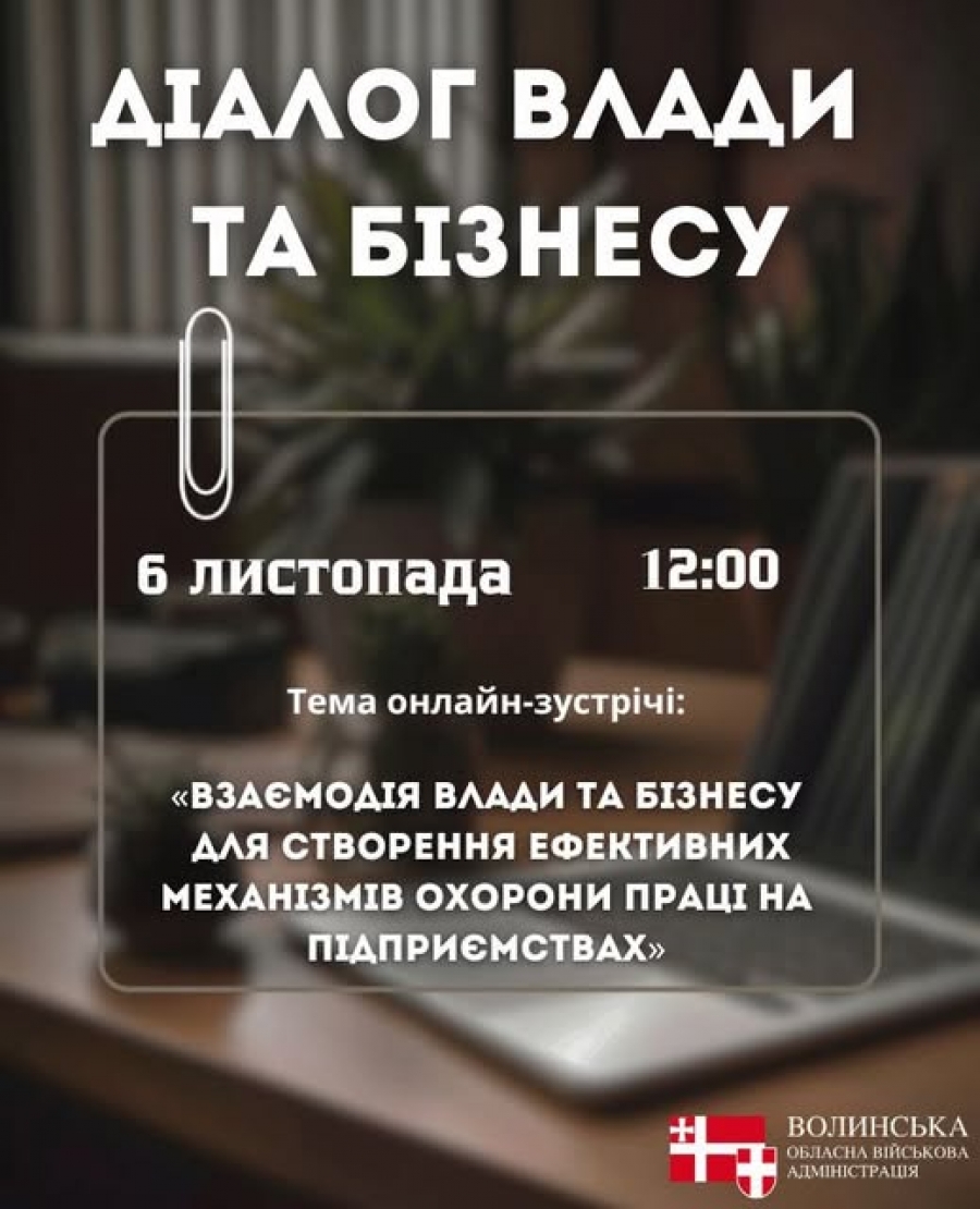 Волинська обласна державна адміністрація запрошує волинських підприємців до конструктивного діалогу.