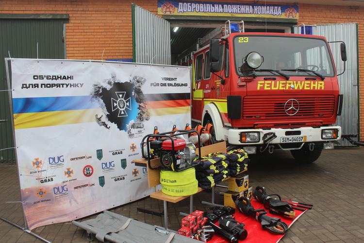 Також волонтери з Німеччини передали для потреб підрозділу пожежну автоцистерну (ємність для води складає 2,5 тисячі літрів), укомплектовану спеціальним обладнанням, пожежні рукави, захисний одяг та спорядження для вогнеборців тощо.
