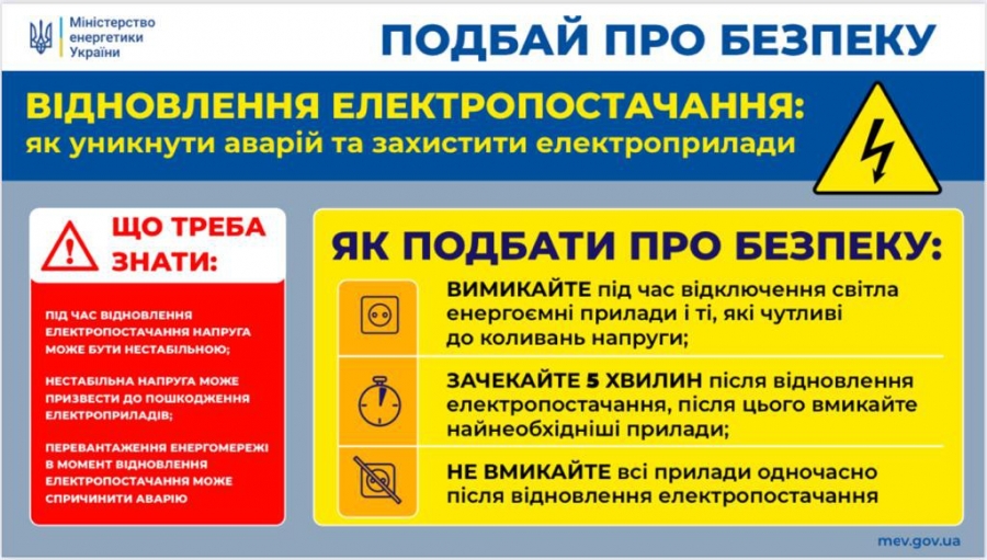 Крім того, багато загорань відбувається у момент повернення електрики після відключення. Коли світло знову вмикається, багато людей одночасно вмикають потужні прилади (опалювачі, котли, бойлери, пральні машини). Це спричиняє великий стрибок навантаження у мережі, що особливо шкодить старим проводкам та викликає перегрів і пожежі у квартирі чи будинку.