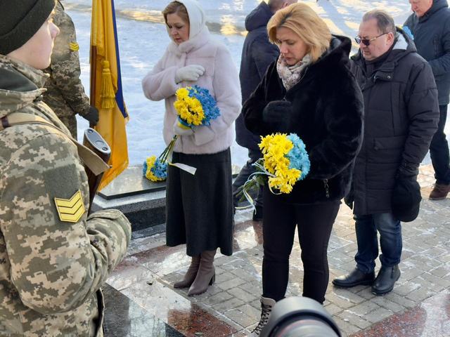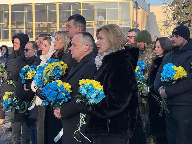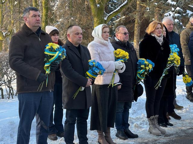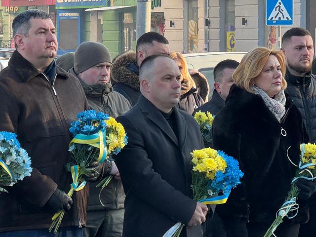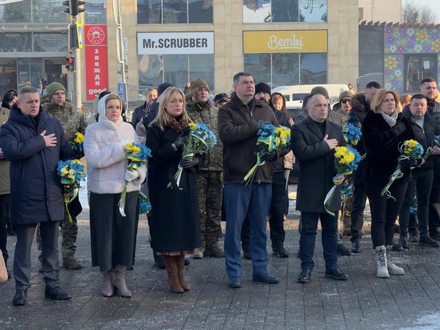 Під час громадської панахиди на Театральному майдані, разом із керівниками області та міста заступниця голови Луцької районної військової адміністрації Алла Ганіч поклала квіти до пам'ятного фотостенду «Герої Небесної сотні – загинули за Єдність України».