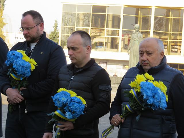 Сьогодні начальник Луцької районної військової адміністрації Анатолій Костик разом із керівниками області та міста поклав квіти до пам'ятного фотостенду «Герої Нескореної України».