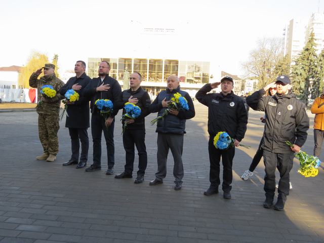 Напередодні Дня українського добровольця, на Театральному Майдані вшанували подвиг відважних та рішучих українських добровольців, які врятували Україну ціною власного життя. Не будучи військовими за професією, проте в критичний для держави момент вони прийняли особисте рішення взяти до рук зброю і захистити свою країну.