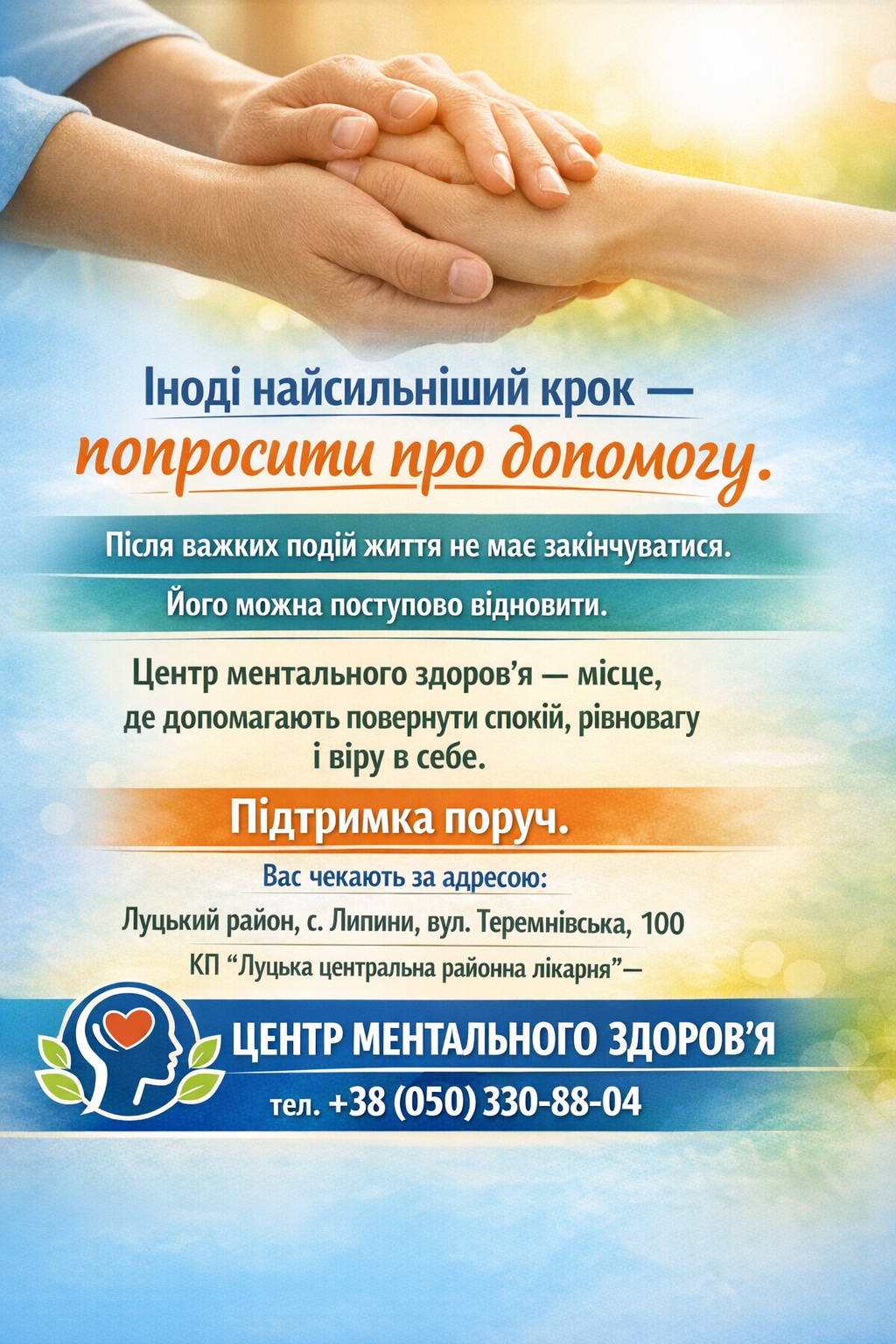 Якщо потрібна допомога, звертайтеся: с. Липини, вул. Теремнівська, 100 (Луцький район)