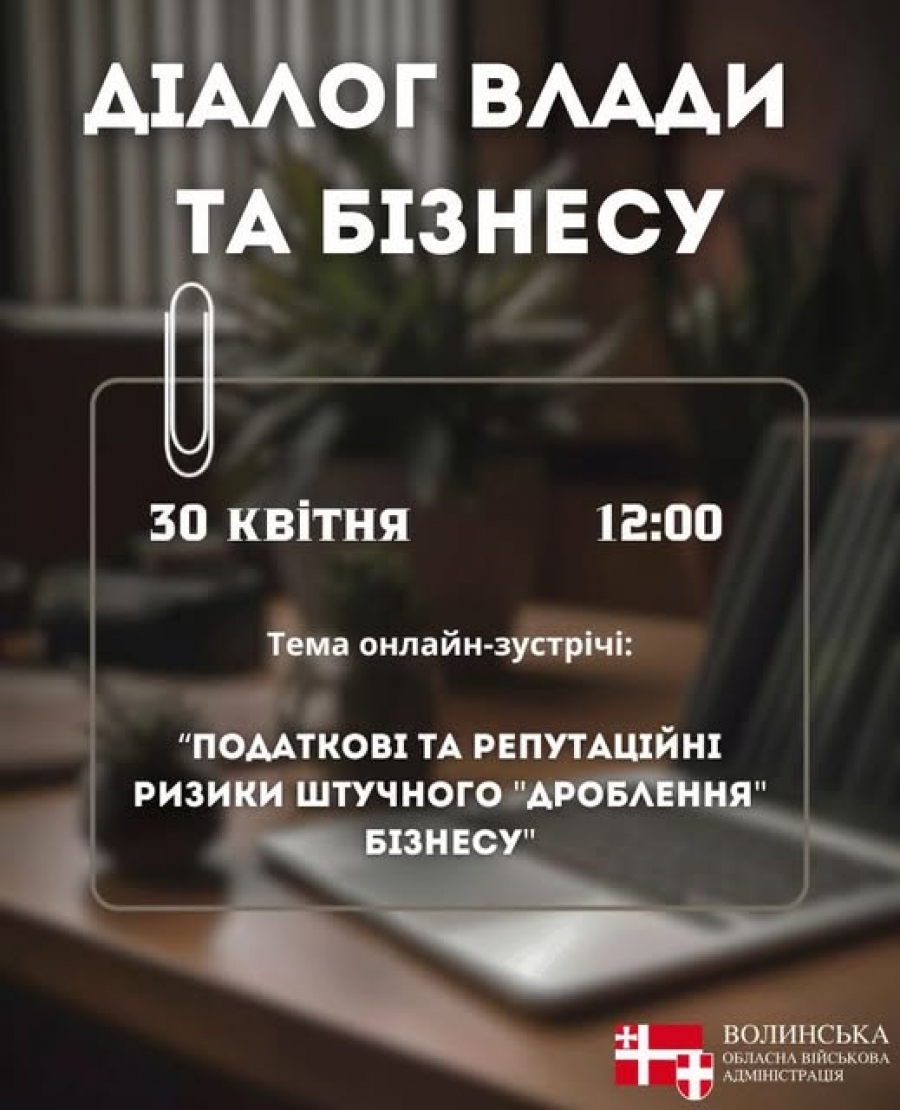 У четвер, 30 квітня о 12:00 год. відбудеться щотижнева зустріч представників влади з підприємцями Волині у межах платформи «Діалог влади з бізнесом».