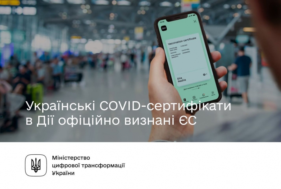 ЄС офіційно визнав українські COVID-сертифікати в застосунку Дія. Водночас Україна визнає сертифікати країн-членів ЄС та інших країн, що приєдналися до ініціативи Digital COVID Certificate.