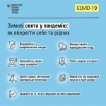 Пандемія внесла зміни у звичні нам способи проведення зимових свят. Щоб зимові свята не були зіпсовані захворюванням, варто дослухатись до простих порад: