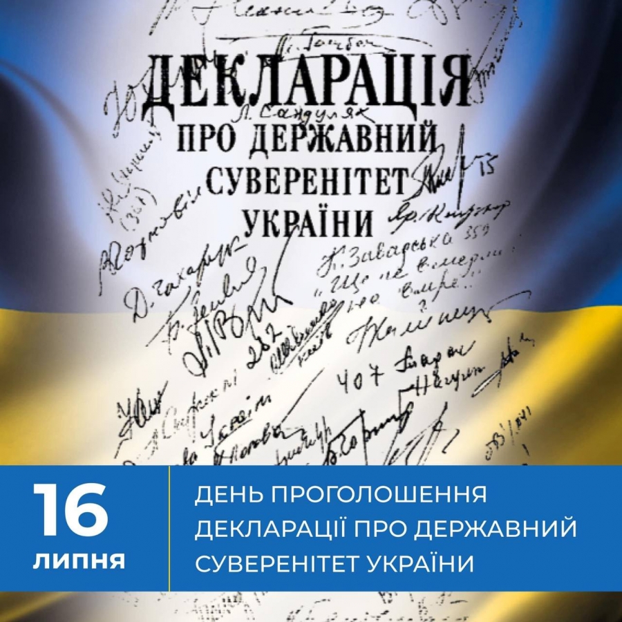 33 роки тому, 16 липня 1990 року, Верховна Рада Української РСР, виконуючи волю українського народу до побудови вільної незалежної держави, схвалила доленосний документ – «Декларацію про державний суверенітет України». За це проголосували 355 народних депутатів.