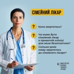 Саме до нього ви, як пацієнт, будете звертатись в першу чергу зі скаргами та запитаннями про здоров’я, які турбують. Сімейний лікар має найповнішу інформацію про ваш стан здоров’я, тому якнайкраще надасть медичну допомогу або ж порекомендує профілактику хвороб. У сімейного лікаря можна зробити безоплатно вакцинації, передбачені Національним календарем щеплень.