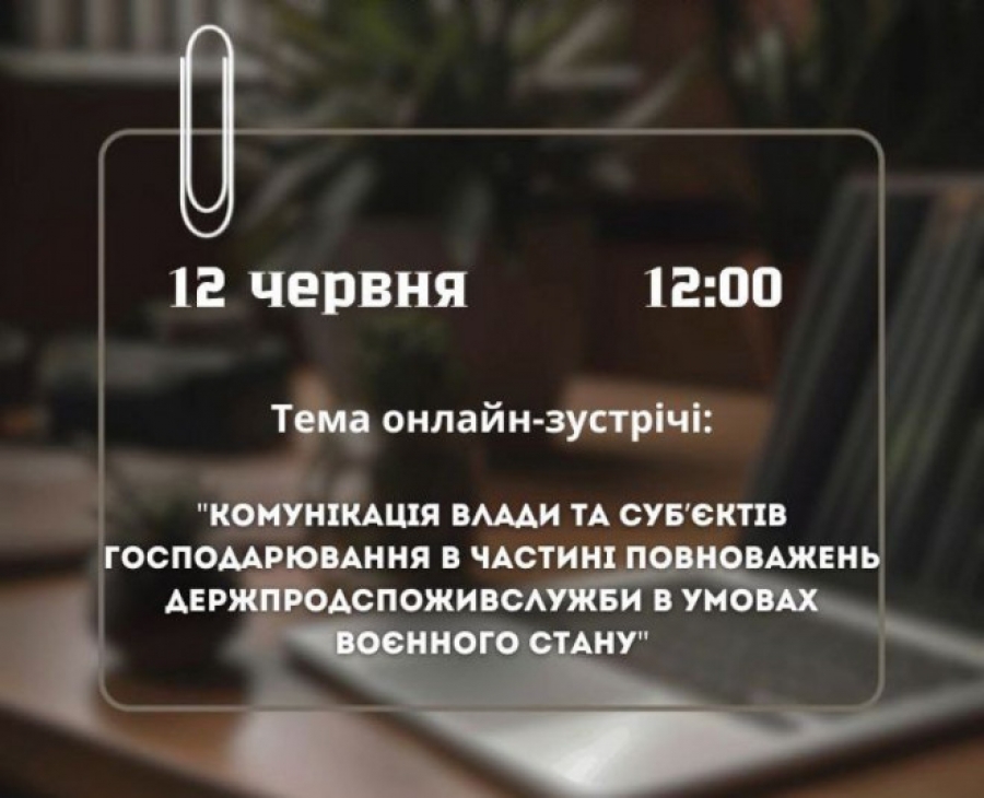 Запрошуємо усіх охочих волинських підприємців до спільної розмови та важливих питань, які турбують бізнес при комунікації влади та суб’єктів господарювання в частині повноважень Держпродспоживслужби в умовах воєнного стану.
