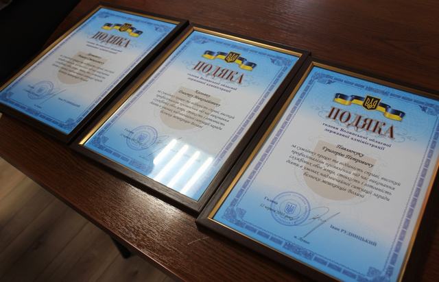 Сьогодні заступниця голови Луцької районної державної адміністрації Алла Ганіч та заступник голови Володимир Рудик вручили Подяки голови Волинської обласної державної адміністрації працівникам будівельної компанії «Орбіта»: Андрію Тищенку, Дмитру Кальяну, Григорію Павлючуку та Роману Ярошевичу.