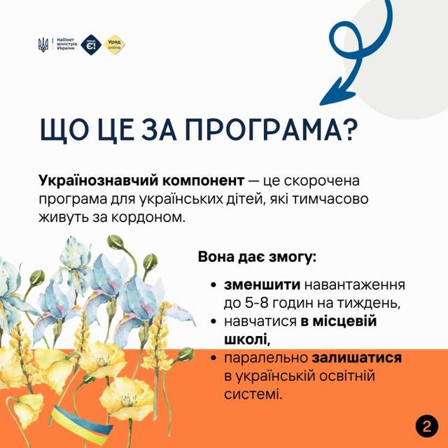 Українознавчий компонент – це скорочена програма для дітей, які тимчасово живуть за кордоном.