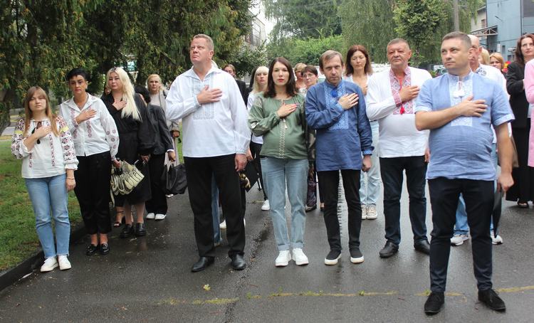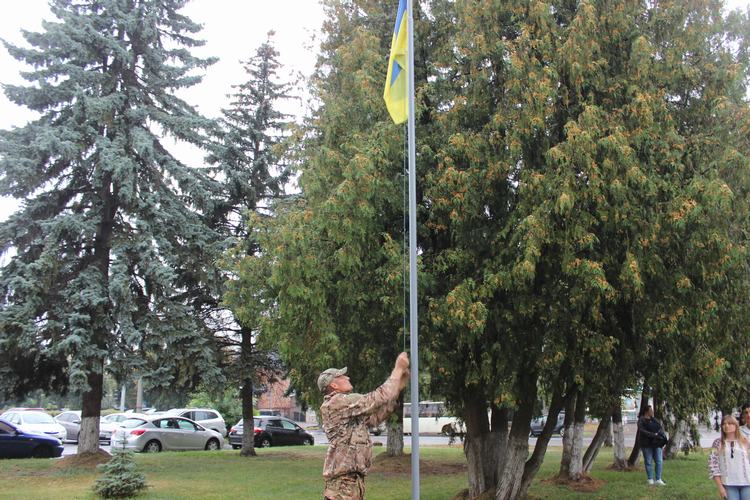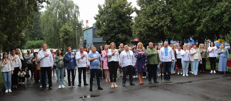 Потому працівники Луцької РВА з гордістю спостерігали за підняттям синьо-жовтого стяга під звуки Державного Гімну – це наші державні символи, за які щодня українські відважні військові жертвують своїм здоров’ям та життям.