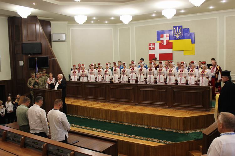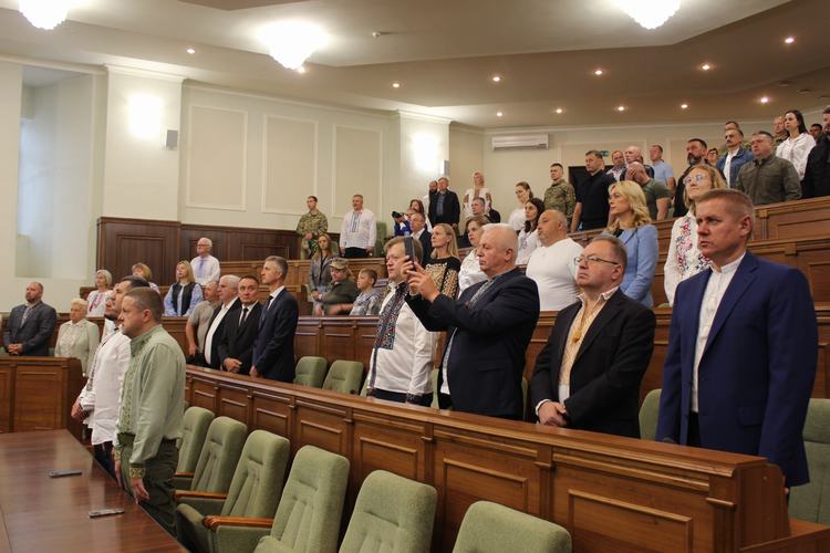 Учасники заходу, серед яких ветерани війни, військовослужбовці, священнослужителі, обласна, міська та районна влада, представники військових адміністрацій, органів місцевого самоврядування, правоохоронці, інтелігенція, громадськість, схилили голови в хвилині мовчання задля вшанування пам’яті загиблих Героїв України. Представники духовенства різних конфесій разом помолилися за Україну.
