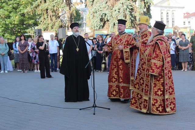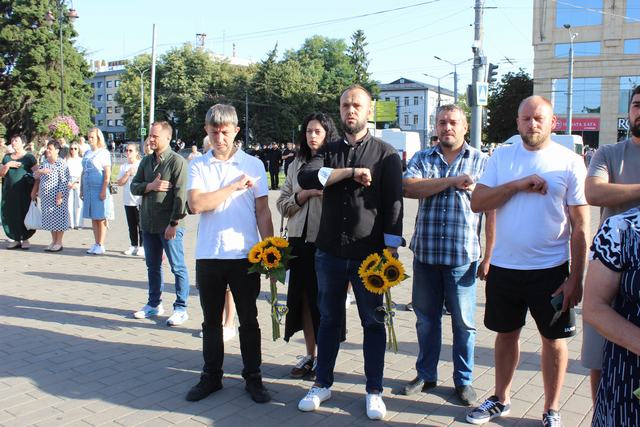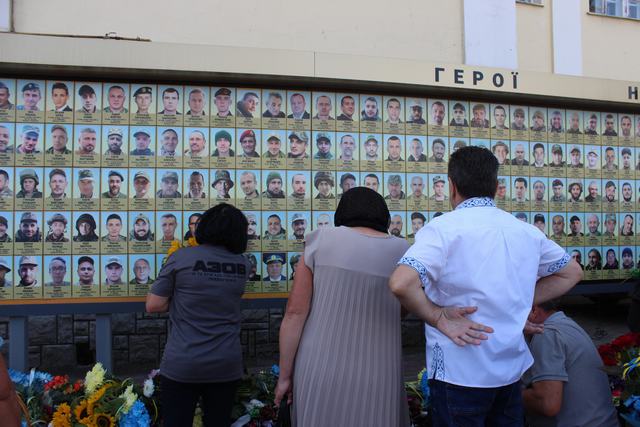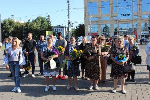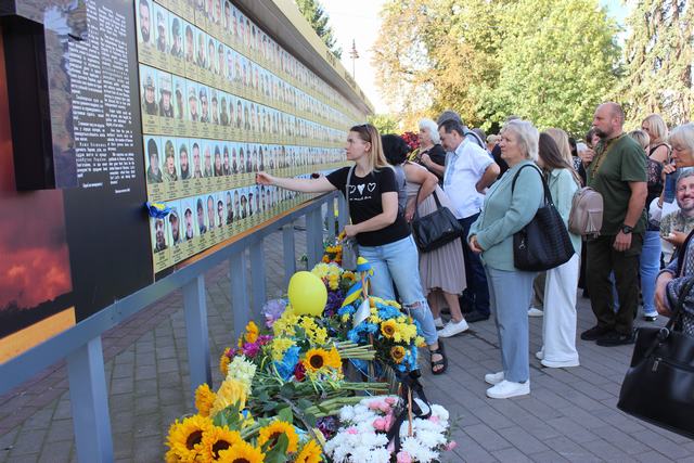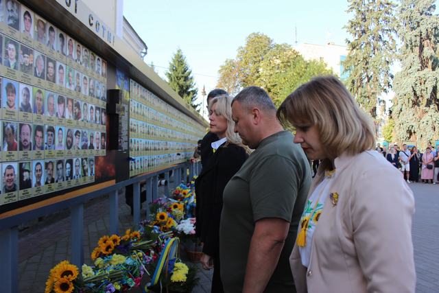 В День пам’яті захисників України, щоб віддати належне подвигу відважних та рішучих українських воїнів, які полягли в боротьбі за незалежність, суверенітет і територіальну цілісність України, сьогодні на Театральному майдані відбулося покладання квітів до пам'ятного фотостенду «Герої Небесної сотні – загинули за Єдність України».