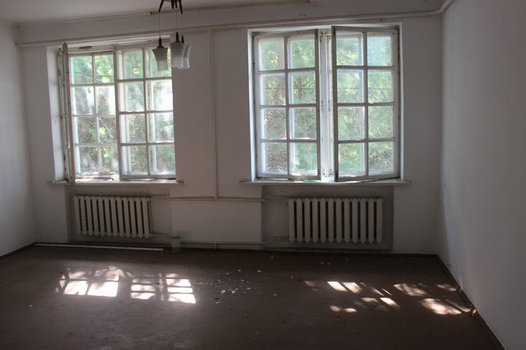 Анатолій Костик та Віктор Годик оглянули великі просторі кімнати з високими стелями та широкими вікнами. Після ремонту тут можна зробити гуртожиток із спільною кухнею на десять кімнат.