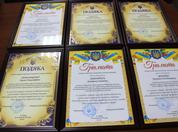 Подяку голови районної державної адміністрації: за сумлінну працю, вагомий особистий внесок у реалізацію соціальної політики держави, відповідальність, високий професіоналізм та з нагоди Дня працівника соціальної сфери оголошено: