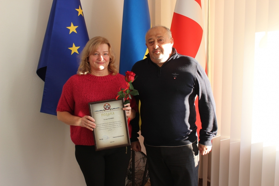Анатолій Костик подякував фахівцю за високий професіоналізм, сумлінне виконання службових обов’язків, вагомий особистий внесок в ефективну реалізацію державної ветеранської політики. Він відзначив її відданість справі щодо підтримки та реалізації інтересів ветеранів та членів їх родин та привітав із почесною відзнакою.