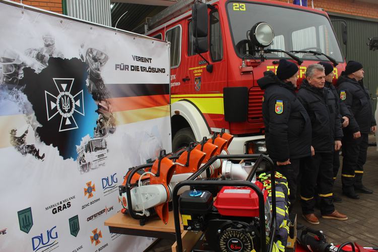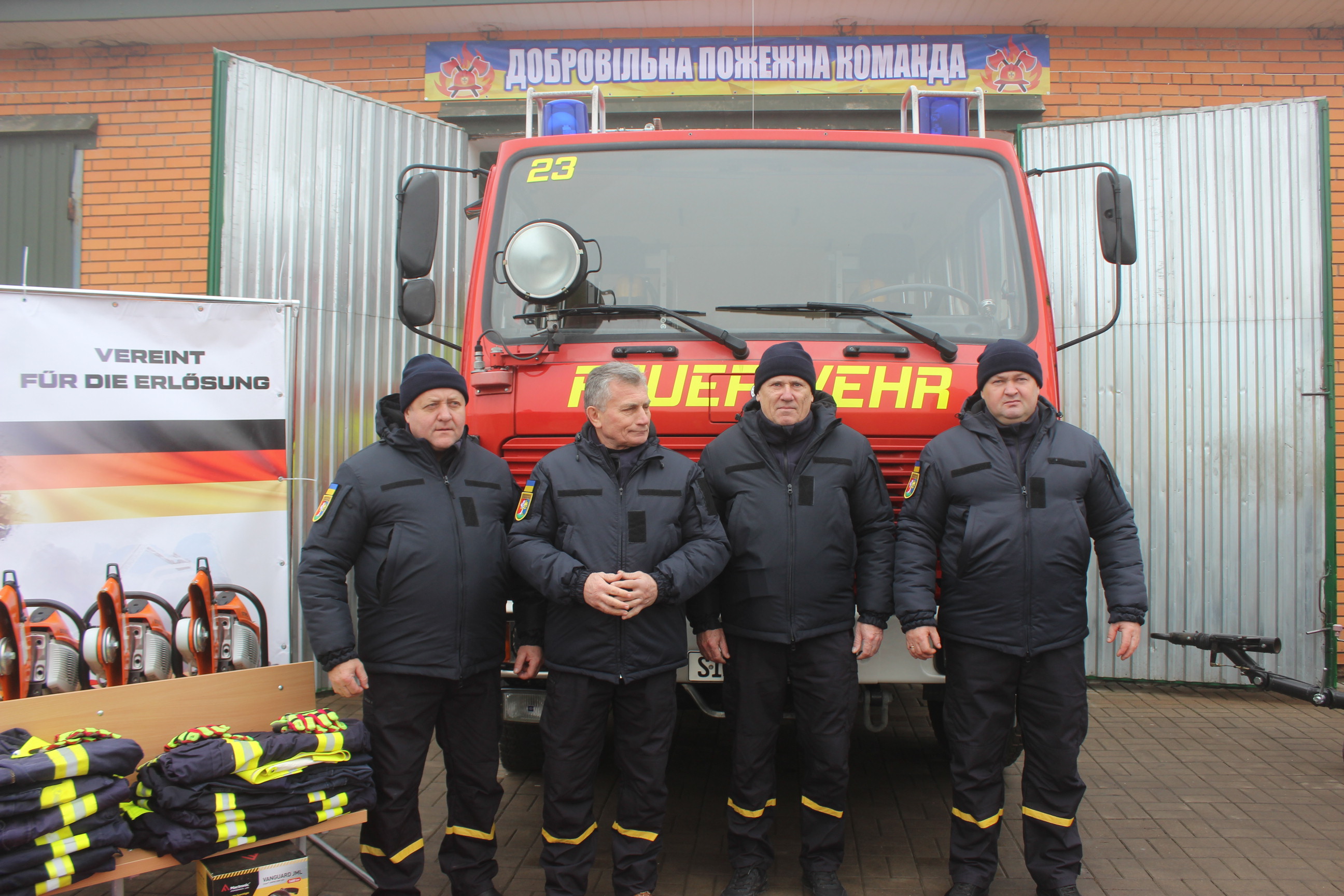 Також волонтери з Німеччини передали для потреб підрозділу пожежну автоцистерну (ємність для води складає 2,5 тисячі літрів), укомплектовану спеціальним обладнанням, пожежні рукави, захисний одяг та спорядження для вогнеборців тощо.