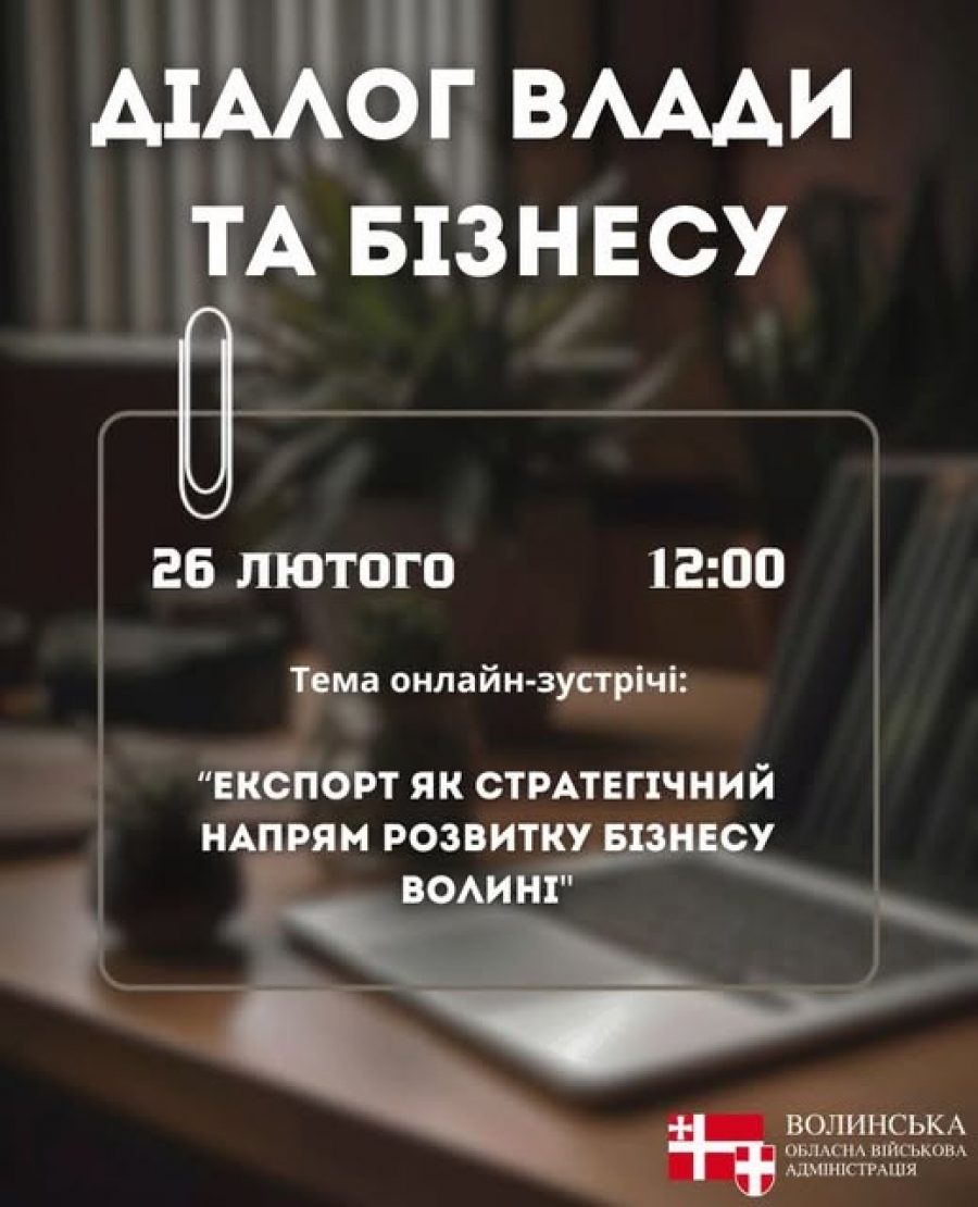 У четвер, 26 лютого, о 12:00 відбудеться щотижнева зустріч представників влади з підприємцями Волині в межах платформи «Діалог влади з бізнесом», ініційованої Президентом України Володимиром Зеленським.
