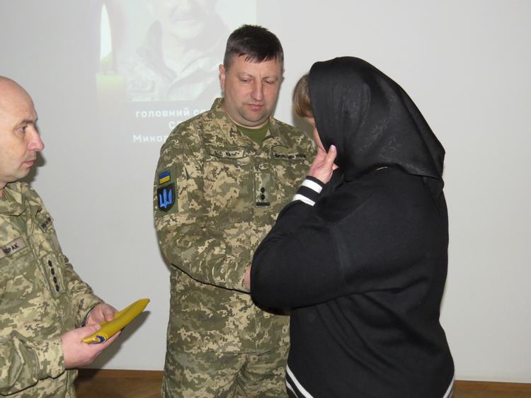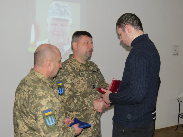 Тоді начальник секції цивільно-військового співробітництва штабу військової частини А4447, підполковник Олег Новосад вручив орден командира військової частини А4447 «Хрест Героя» рідним полеглих захисників.