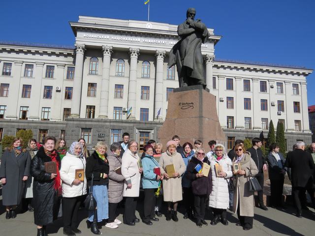 В 212-ту річницю від Дня народження славетного Кобзаря в обласному центрі вшанували пам’ять геніального Тараса Григоровича Шевченка, видатного українського письменника, художника, громадського та політичного діяча – національного пророка, духовного провідника українців. Традиційно біля пам’ятника світоча зібралися представники обласної, районної та міської влади, патріоти, науковці, студенти, громадськість міста. Під час культурно-мистецької акції «Нас гуртують думи Кобзаря», яка проводиться 13-й рік поспіль, разом зі всіма квіти до підніжжя пам’ятника Тарасу Шевченку поклав начальник Луцької районної військової адміністрації Анатолій Костик.