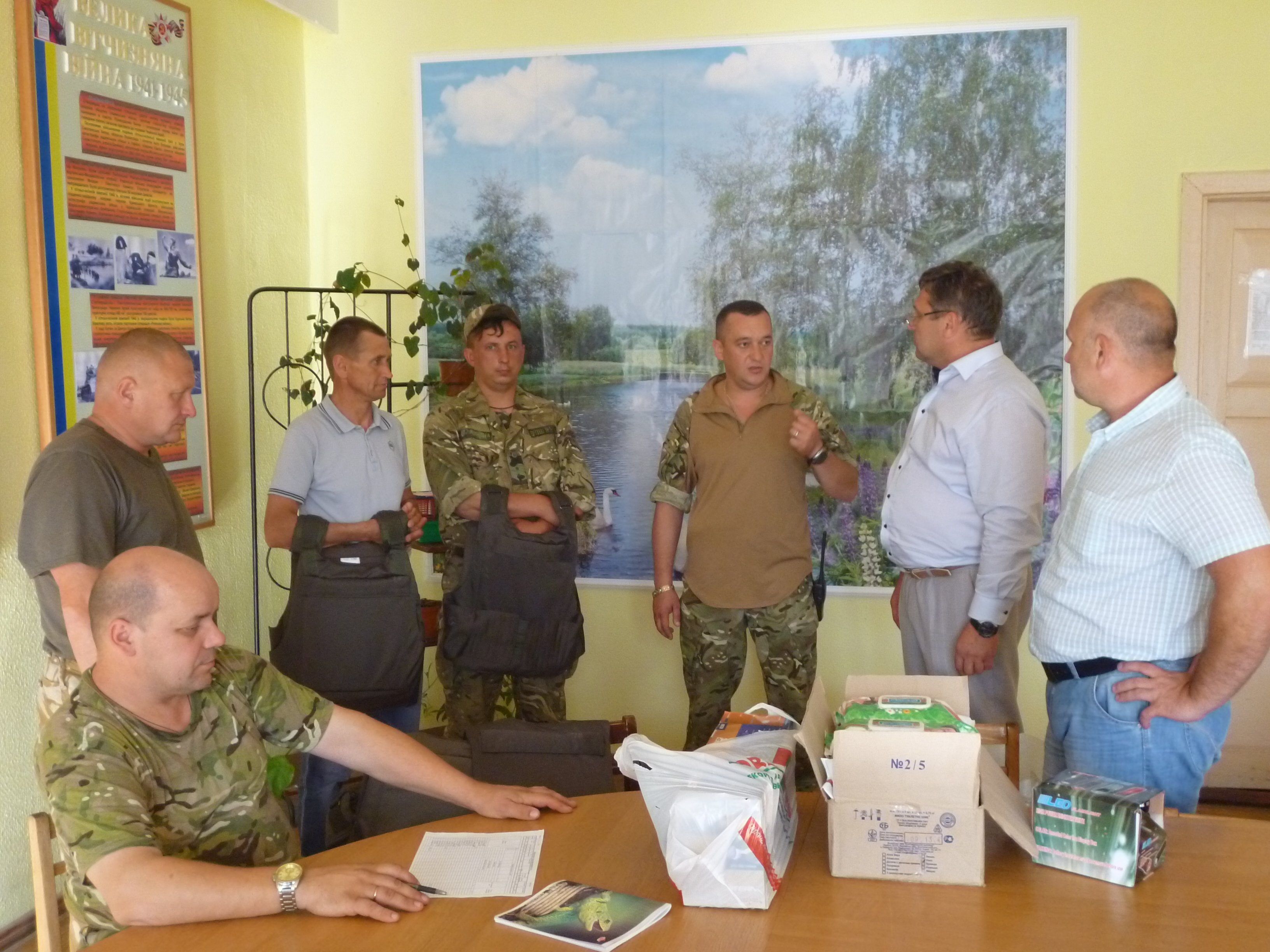 14 липня голова райдержадміністрації Юрій Цейко в черговий раз здійснив робочу поїздку на територію базування підрозділу територіальної оборони військової частини «В 0116» з метою передачі військослужбовцям 20 бронижилетів, болгарочного інструменту, шкарпеток, білизни та засобів особистої гігієни. При зустрічі також були обговорені проблемні питання в родинах військослужбовців та шляхи їх вирішення.