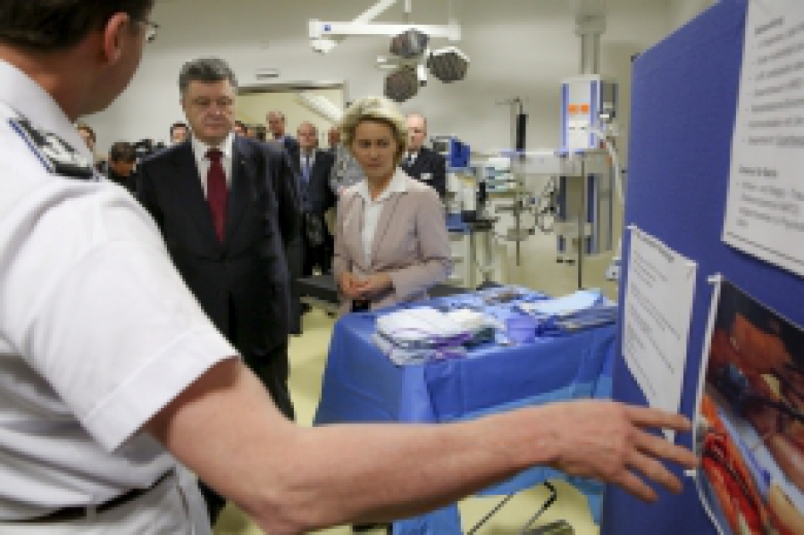 Президент Петро Порошенко відвідав Військовий госпіталь Бундесверу, де зустрівся з Федеральним міністром оборони Німеччини Урсулою фон дер Ляєн. Президент оглянув приймальне відділення невідкладної медичної допомоги та ознайомився з історією лікування українських військових – учасників АТО.