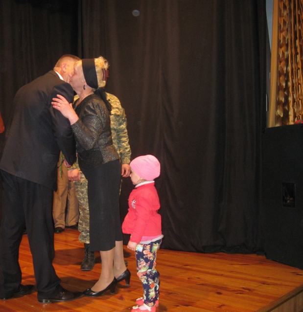 Під час зустрічі вручили Почесні грамоти райдержадміністрації та районної ради ,, За особисту мужність, самовідданість, виявлені у захисті державного суверенітету та територіальної цілісності України, вірність військовій присязіˮ офіцерам, що відслужили в зоні проведення військових дій. Родичам загиблих Героїв представники військомату вручили пам’ятні медалі ,,Захиснику Батьківщиниˮ (посмертно).