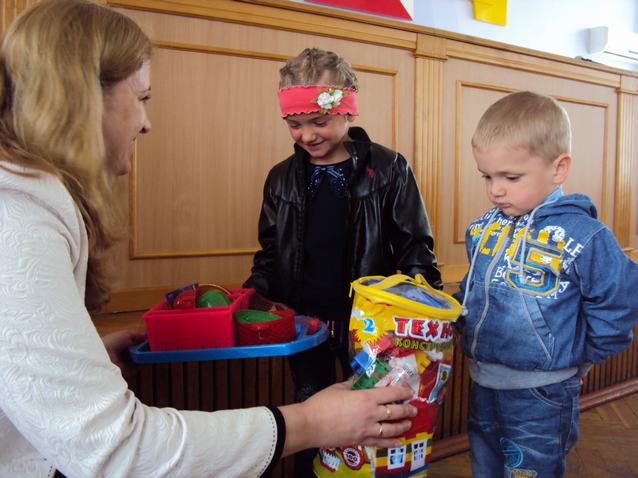- урочисте привітання заступника голови райдержадміністрації Інни Бас та вручення подарунків для дітей-сиріт та дітей, позбавлених батьківського піклування.