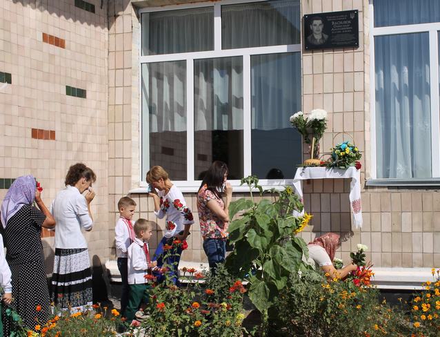 Олександр Василюк з меморіальної дошки щодня зустрічатиме і проводжатиме поглядом учнів, нагадуватиме кожному з нас, що він поклав життя, аби ми жили в мирній квітучій Україні.
