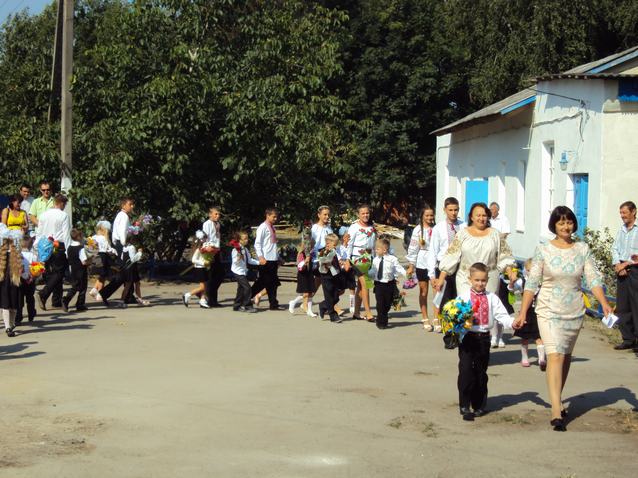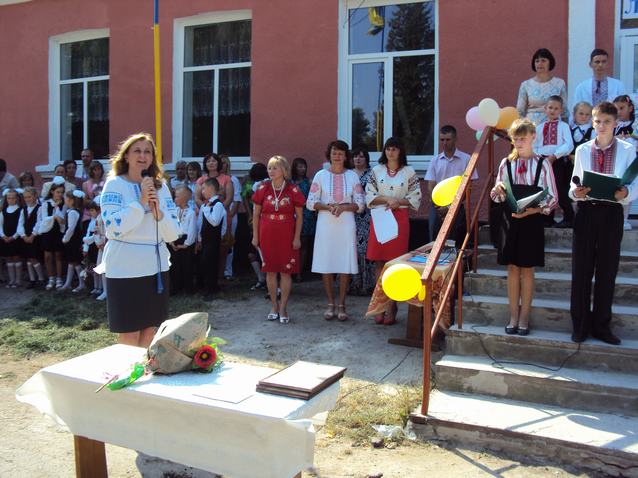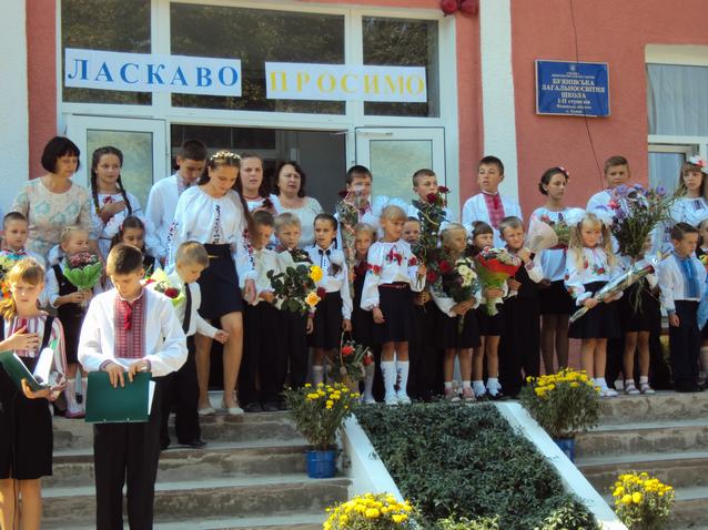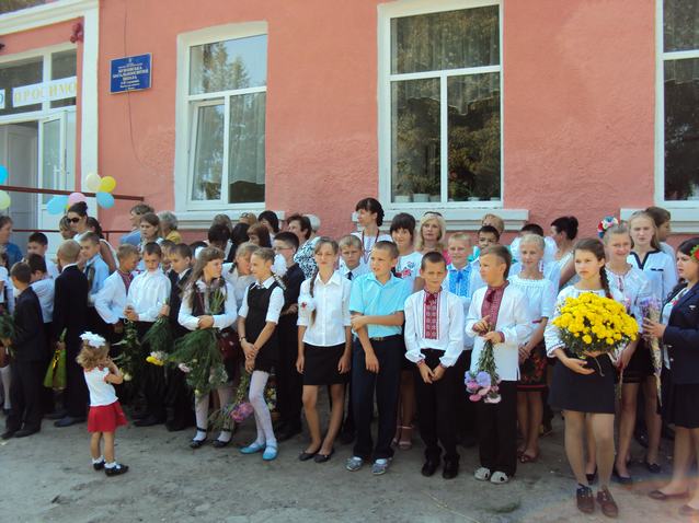 Подвір’я школи зібрало допитливу дітлашню, замріяних випускників, схвильованих батьків, адже прийшла пора сісти за парти. Шкільна лінійка розпочалась із гімну України слова якого зворушливо лилися багатоголоссям з вуст схвильованих учнів, батьків, вчителів. Хвилиною мовчання пом′янули присутні загиблих на Майдані та під час війни в зоні АТО. А ще на св′яті було більше символіки – українських прапорів, жовто – синіх стрічок, вишиванок та українських віночків. Вітань на адресу школярів звучало традиційно багато, от тільки побажання миру та спокою повторювалося