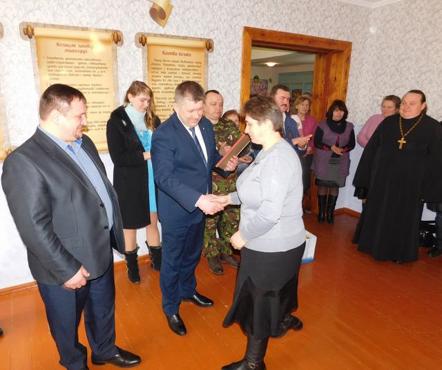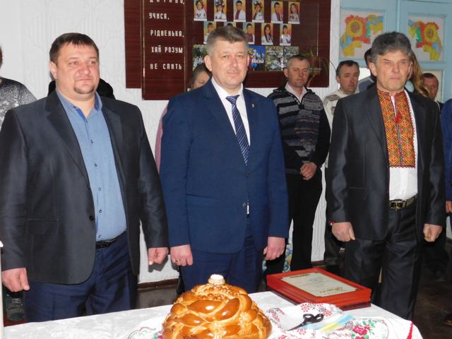 За давньою козацькою традицією, гостей зустрічали пахучим короваєм. Потому, перерізати жовто-блакитну стрічку запросили голову райдержадміністрації Ігоря Ярмольського, голову районної ради Валентина Приходька та директора Садівської загальноосвітньої школи Ігоря Федорка.