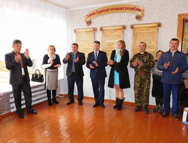 У вітальних словах Ігор Петрович зазначив, що сьогоднішня подія є знаковою для Садова. ,,Адже Садівська козацька республіка є приклад того якими мають бути українці, бо той народ і та нація, яка пам’ятає своє минули може мати достойне майбутнє. Ви є прикладом того, як потрібно вирішувати будь-які справи - бо тільки гуртом ми можемо себе боронити. Ваша ініціатива була донесена, через депутатів районної ради, до владних кабінетів, а ми – як керівники району- її підтрималиˮ. Керівник виконавчої гілки влади подякував і спонсорам, і працівникам школи, і діткам, усім, хто був причетний до оновлення залу. А також голова райдержадміністрації Ігор Ярмольський нагородив Почесними грамотами найактивніших учасників, які доклали найбільших зусиль щоб оновлений хол був та тих, хто доклав свої старання щоб була Садівська козацька республіка.