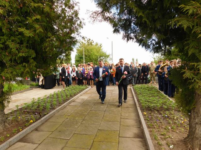 Присутні згадали тих, кого немає серед нас в урочистий та скорбний день, тих – хто не пройде в колонах сивочолих ветеранів. З глибокою вдячністю схилили голови перед загиблими воїнами у Другій світовій  війні та  воїнами, які  обороняли територіальну цілісність  України на передовій у різні часи.