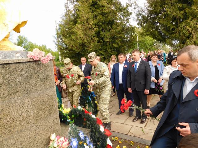 По закінченню  мітингу відбулося покладання квітів, в якому взяли участь керівники органів виконавчої влади та місцевого самоврядування району, представники підприємств, установ, організацій, ветерани Другої світової війни та учасники бойових дій, молодь.