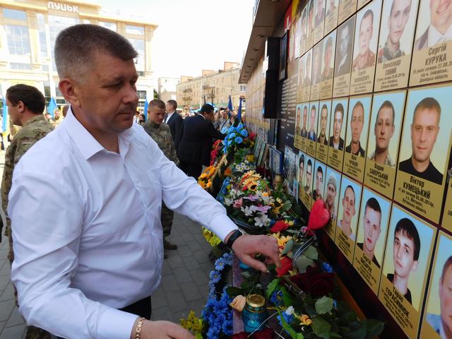 Після вручення нагород відбулося урочисте покладання квітів до стели загиблих воїнів на Театральному майдані та вшанування пам’яті полеглих бійців на кладовищі у селі Гаразджа. У заходах взяли участь голова райдержадміністрації Ігор Ярмольський, голова районної ради Валентин Приходько, перший заступник голови райдержадміністрації Володимир Боярчук, заступник голови райдержадміністрації Інна Бас.