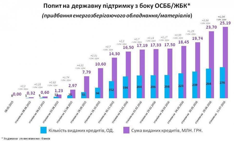 Так, за тиждень, з 4 по 11 липня 2016 року, до Урядової програми з енергоефективності приєдналося ще 6 ОСББ, які залучили майже півмільйона гривень на проведення загальнобудинкових енергоефективних заходів.