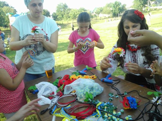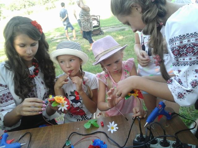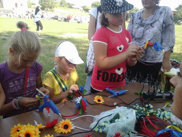 Охочих опанувати цю техніку було дуже багато. На майстер-класі діти самостійно робили невеликі віночки, прикрашені квітами, стрічкою та різними елементами декору. Дівчата вибирали вподобаний їм декор і прикрашали ним власні віночки. В процесі майстер-класу спеціалісти Центру ознайомили учасників заходу з історією появи цього неймовірного аксесуара, а також поділяться деякими секретами створення цих та інших композицій. Хлопці плели браслети з синьожовтих стрічок та змогли порадувати улюблених матусь своїм незвичайним авторським виробом.