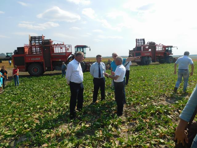 Поряд, тривав процес збирання цукрових буряків. Федір Лиштван розповів про технологію вирощування солодких коренів, а учасники заходу наочно ознайомилися із роботою механізованого загону.